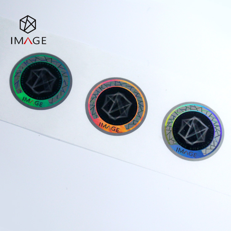 This 3D hologram sticker is our generic hologram, which consists of our own logo that inlaid our company name "IMAGE" and some special security features. It can also be made with custom imprint, including logo, color, size, shape, etc.